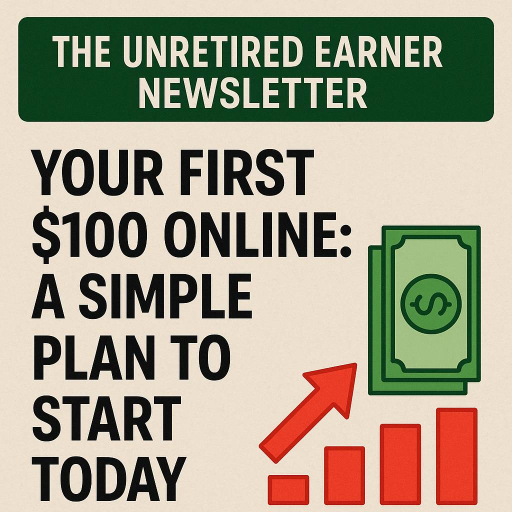 Your First $100 Online: A Simple Plan to Start Today Dear UnRetired Earner, Last time, I asked you to pick one idea, build a quick landing page, and tell one person what you’re working on. If you’ve done that—bravo! You’re already ahead of 90% of people who dream but never start. If you haven’t, no sweat. Today, we’re going to make it so simple you’ll wonder why you waited. Here’s the truth: you don’t need a perfect plan or a fancy website to earn your first $100 online. You just need to...